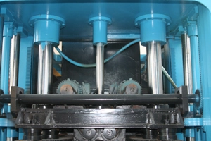 ລະບົບ demoulding Synchronous ທີ່ຂັບເຄື່ອນດ້ວຍເກຍແລະຕ່ອງໂສ້ເຮັດໃຫ້ສອງທໍ່ demoulding ເຮັດວຽກ synchronous ແລະເຮັດໃຫ້ molds ເຄື່ອນຍ້າຍ.