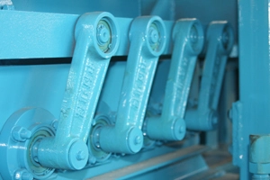 ສໍາລັບພາກສ່ວນການເຄື່ອນໄຫວຂອງ stacker, ພວກເຮົາໃຊ້ການເຊື່ອມຕໍ່ swing. ນີ້ຈະສົ່ງການເຄື່ອນໄຫວວົງວຽນຂອງແກນ swing ເຂົ້າໄປໃນ ການເຄື່ອນໄຫວ reciprocating ຊື່ຂອງກອບມືຖື. pallets ຈະ uniformly ເລັ່ງແລະເຄື່ອນທີ່ກ້ຽງ, ເຊິ່ງເຮັດໃຫ້ມັນງ່າຍຂຶ້ນຫຼາຍທີ່ຈະດໍາເນີນການ.
